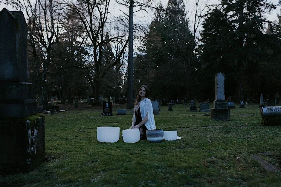 As the veil thins at Samhain (pronounced "sow-win"), we gather in sacred circle for an evening of sound healing, meditation, and ritual. This ancestral connection ceremony weaves together the resonance of crystal bowls and drums, ethereal song, guided meditation to commune with guides and beloved dead, journaling for reflection, and witchcraft to release and renew.