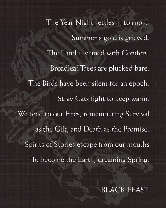 Join Sylvia & Tristan Eden of Leodrune Press for a live reading of their book, BLACK FEAST: Experimental winter-tide lore & praxis. Distinct from conventional discourse around seasonal ritual, the book explores the beauty and intensity of Winter as it is now, in a changing, volatilizing climate. Together we will move through poetry, myth, science and ceremony to uncover the occult virtues of the frigid, bare-limbed landscape.